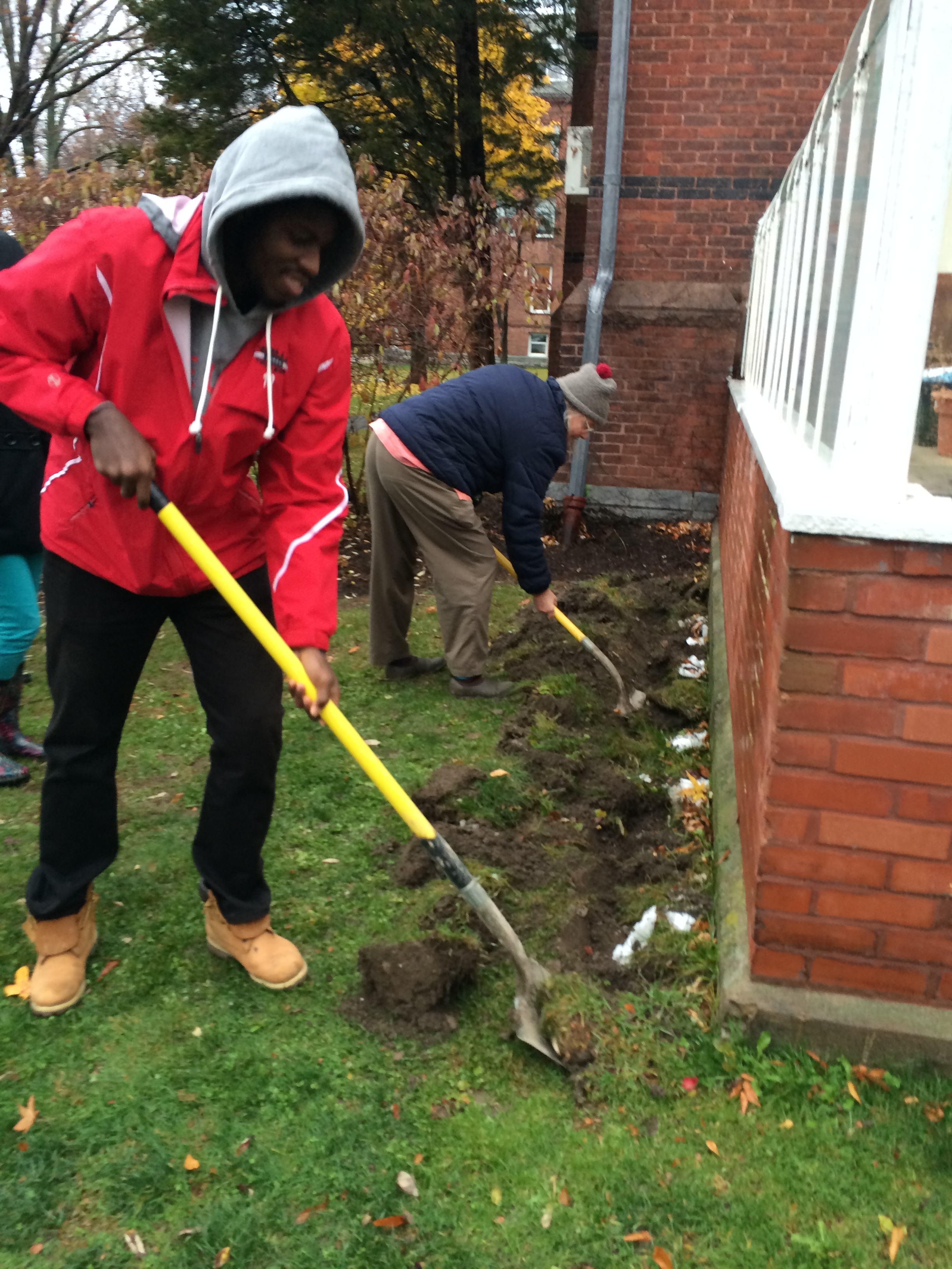 Students planting bulbs after lecture