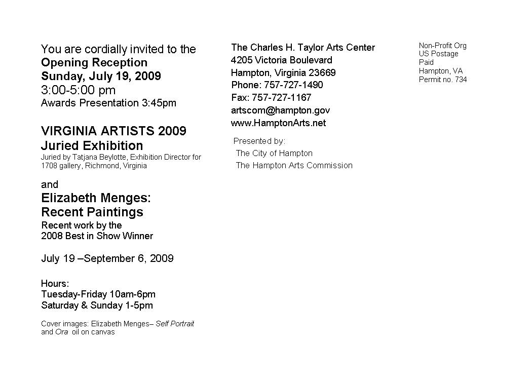 This afternoon was the opening for the Virginia Artist 2009 Juried show at the Charles H. Taylor Art Center!! I was so excited and surprised that I recieved an award. It was an award of Distinction for my screen print!!!! My first award ever for an art show! I was not excepted that. Go out to the show it is up till the first week of September!!!